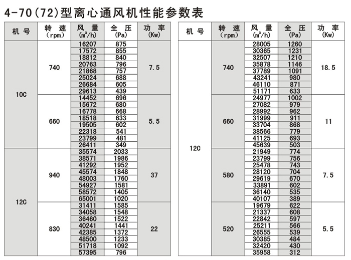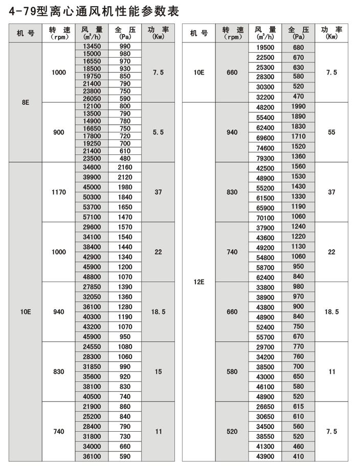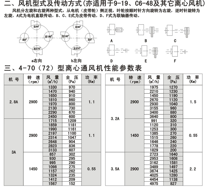 注:F4-72/79為防腐型離心風(fēng)機,用于輸送有腐蝕性的氣體,用玻璃鋼為制作材料。