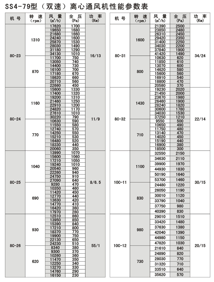 SS4-79系列雙速噪聲離心式通風(fēng)機,以4-79型離心式配變極多速三相民步電機構(gòu)成,使風(fēng)機在保留原型風(fēng)機優(yōu)特點的同時,又具有轉(zhuǎn)速可調(diào),風(fēng)量及風(fēng)壓可在大范圍內(nèi)變化,結(jié)構(gòu)簡單,價格合理的優(yōu)點,可以一機兩用,節(jié)省投資和運行費用。