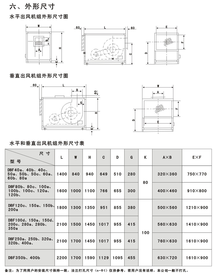 一。概述 DBF系列低噪聲變風(fēng)量風(fēng)機(jī)箱,采用先進(jìn)的低噪聲雙吸式離心風(fēng)機(jī),并配置減振器,箱體內(nèi)壁(保溫)吸聲面板,進(jìn)風(fēng)口設(shè)置過濾網(wǎng)。具有噪聲低,振動小,體積小,重量輕,風(fēng)管連接靈活,現(xiàn)場拆裝方便的特點(diǎn),具有消音和空氣過濾作用。配備電控箱后,可實現(xiàn)調(diào)速變風(fēng)量,并可遠(yuǎn)程控制。DBF系列低噪聲變風(fēng)量風(fēng)機(jī)箱可用作通風(fēng)系統(tǒng)串聯(lián)加壓;或直接作為排氣風(fēng)機(jī);以及作混風(fēng)箱兼動力源之用。要求通過風(fēng)機(jī)箱的氣休無腐蝕性和自然性,不含粘性物質(zhì)。DF系列低噪聲變風(fēng)量風(fēng)機(jī)箱已在空調(diào)通風(fēng)工程廣泛使用。 DSF系列(HTFC系列)防排煙風(fēng)機(jī)箱,HTFC系列消防專用離心式風(fēng)機(jī)箱的派生產(chǎn)品,它采取的風(fēng)機(jī),設(shè)備,部件,材料均按高溫排煙風(fēng)機(jī)箱配置,DSF(HTFC系列)防排煙風(fēng)機(jī)箱除了能用作DBF系列低噪聲變風(fēng)量風(fēng)機(jī)箱外,還能排放280攝氏度以上的高溫?zé)煔狻?![]() ![]() ![]() ![]() ![]() ![]() ![]() |